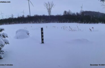 Right now it looks like the biggest winner will be south of Buffalo and the higher terrain east of Lake Erie… where over a foot of new snow accumulation looks likely in many areas from Tuesday evening into Wednesday evening. The moisture is plentiful, with cold air blowing over the open waters in a due-west to ever-so-slightly south-of-west flow. It should be mentioned that it’s not going to be snowing all of the time everywhere; there will be periods of light snow or flurries followed by intense snowfall rates. As well, accumulations could vary considerably, with over a foot of snow in the higher terrain, as mentioned, but much lesser amounts in lower elevations, as well as along the lake shore, the Thruway and into Buffalo proper.