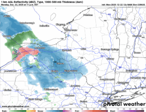 It is not showing up in the NAM 3K for temperatures but there should be in the lower elevations a mix with or a change to rain with temperatures climbing above freezing for a time. At or above 1000′, the temperatures should hold near freezing which should keep this mainly a snow event. I would expect a winter weather advisory to be issued for at least a few counties here.