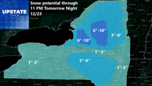 Santa’s sleigh (or your sleds) will have joyful ride through Upstate NY on Christmas Night with a varying amount of clouds. We will call it partly to mostly cloudy. Temperatures should be about normal. Santa’s gifts will complete your tree!