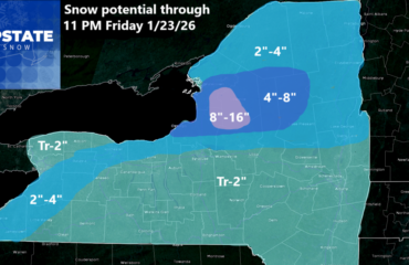 This will be VERY ELEVATION-DEPENDENT, which is why we have some wide ranges here on our numbers. Folks over 1200 feet or so …. bazinga! Double-digit snows, particularly along and south of route-20, and ESPECIALLY as you get east of I-81 into the Susquehanna Region and Catskills. The upper level low is expected to move pretty much across central PA, which puts the Catskills and Susq. region right in the Goldilocks Zone for the heaviest totals.