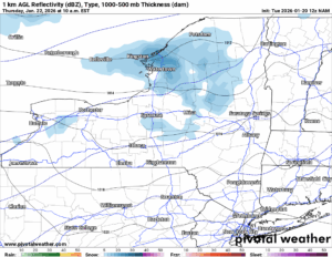 On Thursday Morning another weak front passes by and that will help to keep the chances of snowfall up for Thursday and as well into Friday. The lake effect will not be anywhere near as heavy or crazy as what it is right now.