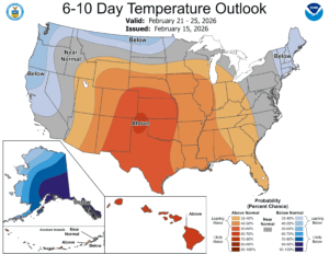The 6-10 and 8-14 days say through the rest of February and into the first few days of March, we should be near normal. Maybe slightly above. Maybe slightly below. Most days will be in the 30s so any melting or compaction of the snowpack will be slow. Overnight lows well below freezing.