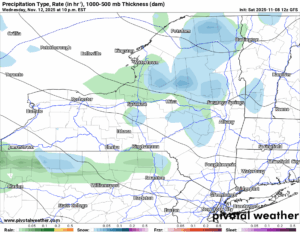 Our strengthening low pressure moves past Upstate NY and off to the North. This may cause some changes to the precipitation for a time but eventually as the northwest winds get going behind the low, the cold air rushes in, and it changes to all snow. Will it get super cold? NOPE! The super cold is heading due south from the Great Lakes to the Ohio Valley, then all the way to the Gulf Coast! It’s going more south and east, hence why we don’t changeover as fast.