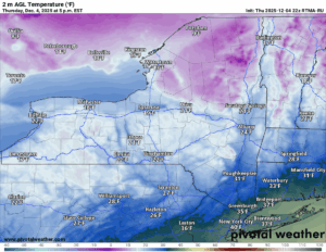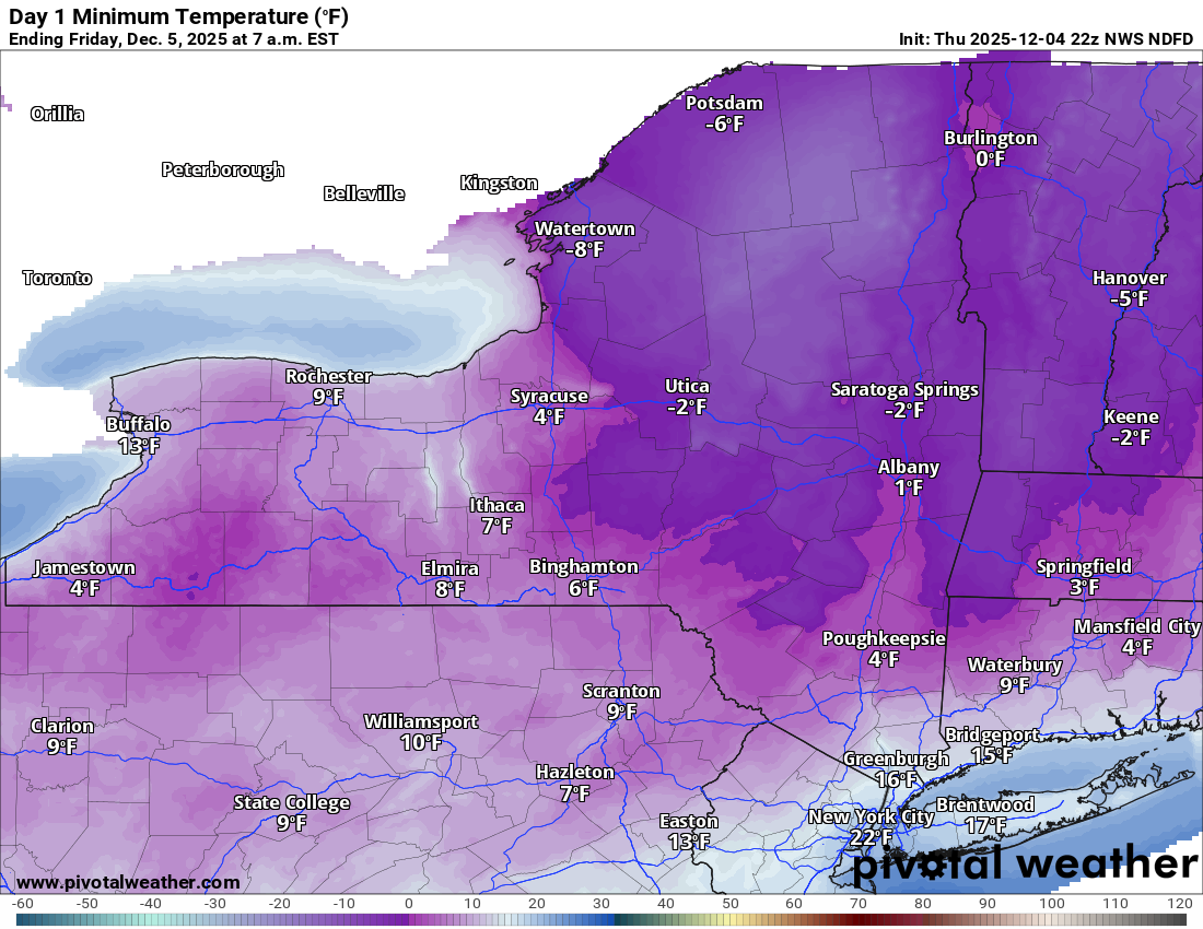 No matter what happens, the lows tomorrow morning will be a VERY CLOSE CALL. It’s already dark in Upstate NY and these are where temperatures are right now!