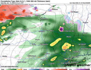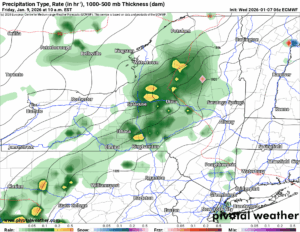 Not until Friday will it take off. See the several bars scattered across the Empire State? This is indicative of strong southerly winds of 20-40 MPH with higher gusts. Friday is the day of most concern as the temperatures will be the warmest, the winds will be strongest, and the melting will obviously be the fastest.