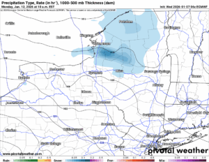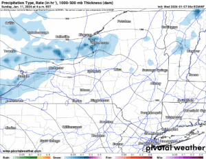 The cold front clears us Sunday morning, early highs of 35-45 will be falling during the day as any rain changes quickly back to snow in the morning then stays as snow showers in the afternoon. Since it is behind the system, there will not be much left with it. Maybe a dusting to 2″ but even a call like that is nearly too far out to make right now.