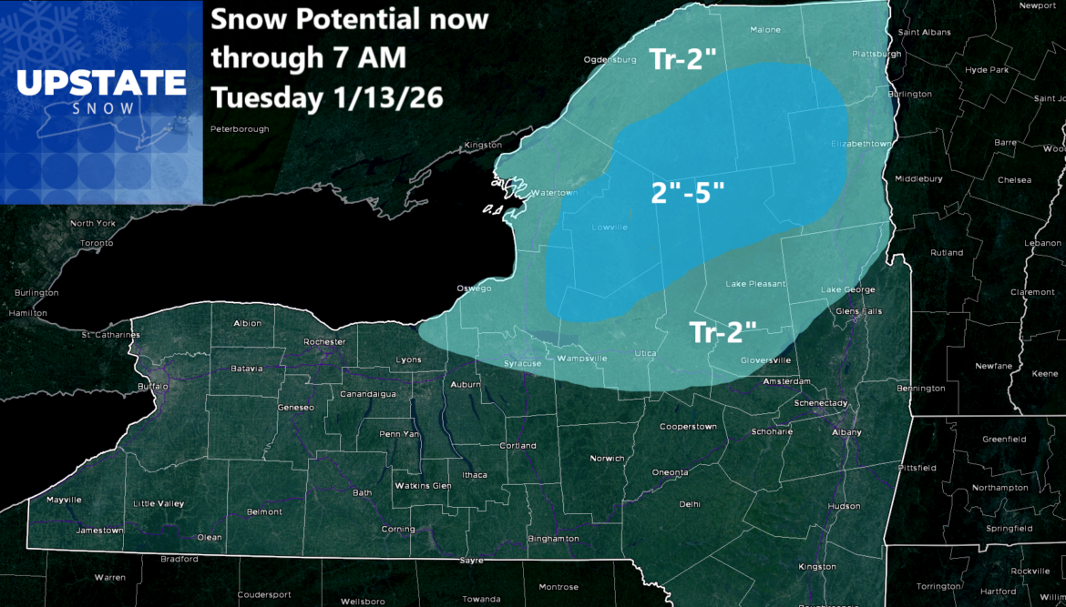 There is another weak storm system coming on down from Canada tonight. As it passes by, expect snow showers to break out. There will be periods of briefly heavier snows across the higher elevations of the North Country and the Adirondacks but nothing to write home about.