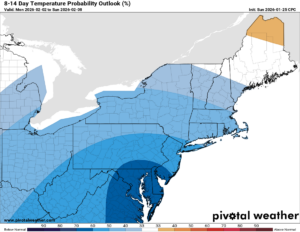 The 6-10 day and the 8-14 day show continued below normal temperatures and drier than normal conditions for Upstate NY and the Northeast. Even the 3-4 week continues to run below normal. So if you expect melting and/or warming between now and President’s Day, you will be likely disappointed. This time.