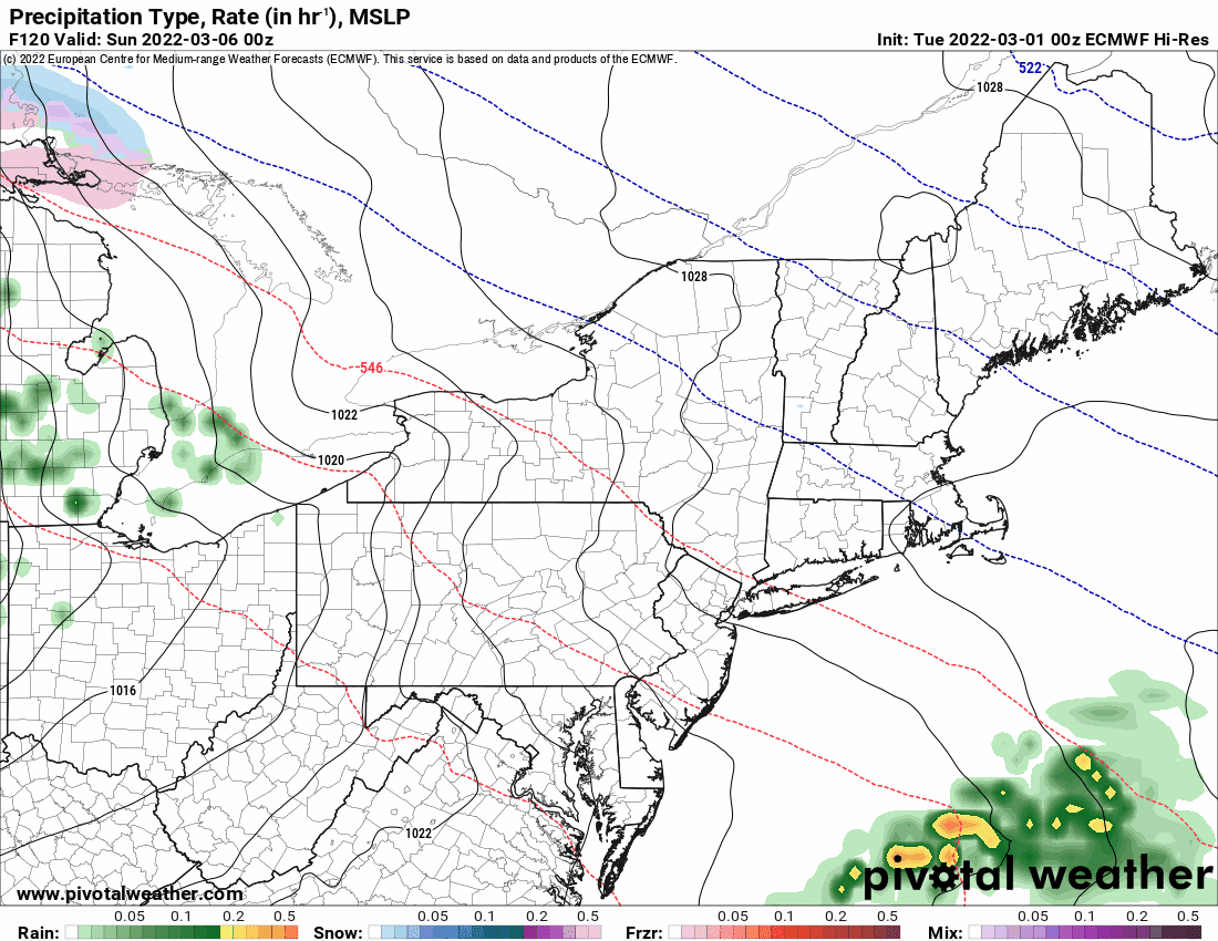 Temps continue to rise Saturday night and by Sunday it’s RAIN. Not even close on the P-type here. It’s a full shot warmup as the strong low swirls over the Great Lakes to our north and west. Even the Tug, Adirondacks and North Country will be hit good by Sunday. If you have any riding plans between now and Saturday GET THEM IN. All bets are off after Sunday. Now on Monday into Tuesday it looks like a secondary storm may follow, dive south and east and provide a return to SNOW. We shall see. It’s day 7-8 material at the moment.
