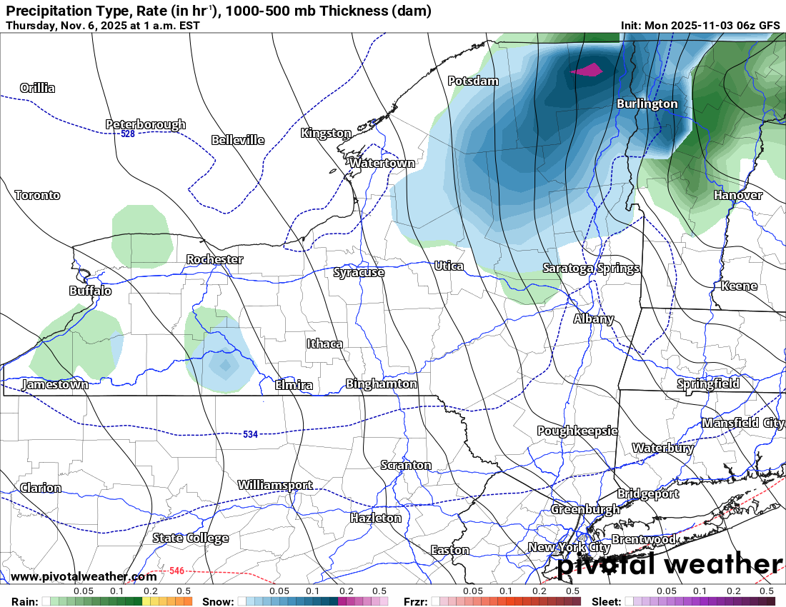 Monday Night it gets just cold enough for a changeover to snow in the Adirondacks only. In this case even 1,500 to 2,000 feet would be generous here. Above 2,000 should be a given but below that, especially below 1,500 feet, I am thinking like a majority of the short term and long term models, go with rain showers and temps in the 30s to low 40s here.