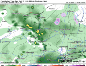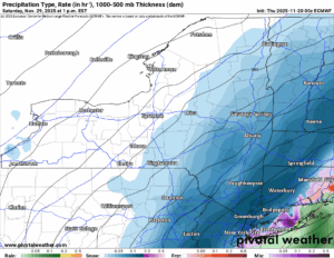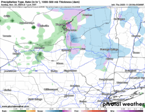 OK, now why am I showing this? Well since it is on Saturday of Thanksgiving Weekend, which is 9 days away at this time, I figured it would be enough to at least take a look. Because it is there and it’s on the 00Z Euro from last night, 00Z Thursday 11/20. It will be interesting to see if this setup holds in the coming model runs. If it does, it means travel heading home for Thanksgiving Weekend could be a lot worse than getting there!