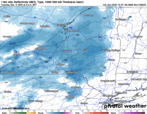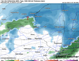 The warm front will lift over the state heading into Wednesday, which will bring thermometers above freezing, especially in the lower elevations. In many lower elevation cities like Albany, Kingston, Syracuse and Rochester, I would expect 40 degrees or better on Wednesday. This means it becomes RAIN. This also means all that snow on the ground so far begins to melt and compact. I am expecting some snow loss across the state but no big WIPEOUT of snow. At least not this time.