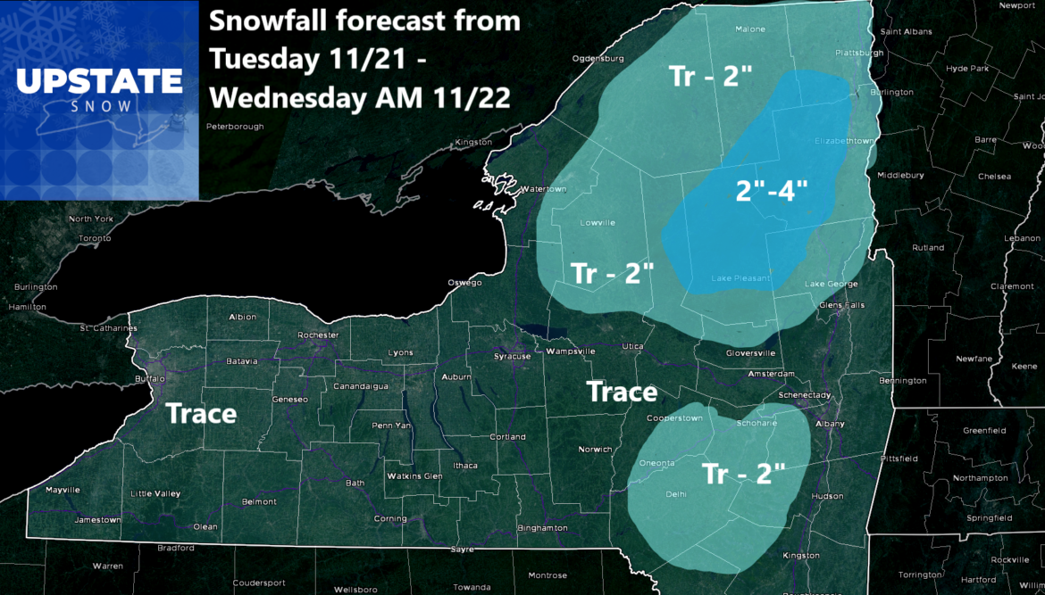 Good morning! It’s Thanksgiving week and many people are on the roads traveling. Perhaps you are among the millions of them today, tonight and/or tomorrow. If you are seeing this and can change/modify your plans for this afternoon and especially tonight, especially in the Tug Hill and in the Adirondacks, it would be a good idea.