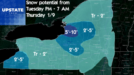 The forecast snowfall later this evening into tomorrow for the snowbelt areas is still on schedule. I’m going to stick and stay with my snowfall forecast from yesterday with these caveats: Yes some parts of the hill will likely break 10″. If they do i’m thinking localized 12-16″ amounts on the hill proper, probably not