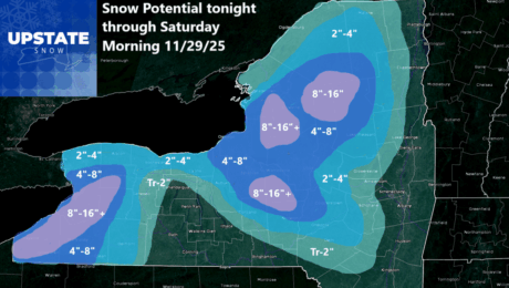 It continues to be snowy all across Upstate NY! A majority of folks received 4 to 8 inches of snow yesterday. A few got more. A few got less. Most of it (probably about 75% of the Upstate) fell into this category. We get a break today. Tonight and tomorrow not so much. We don’t